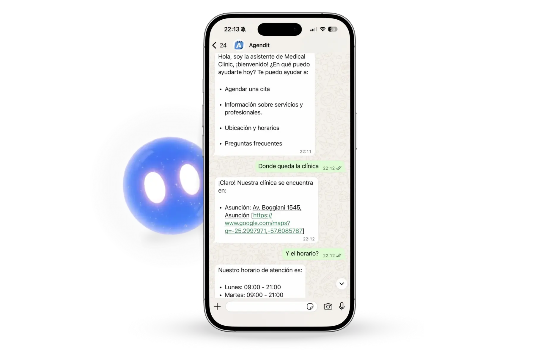 Tus clientes pueden agendar citas en cualquier momento, directo desde el WhatsApp de tu negocio.
